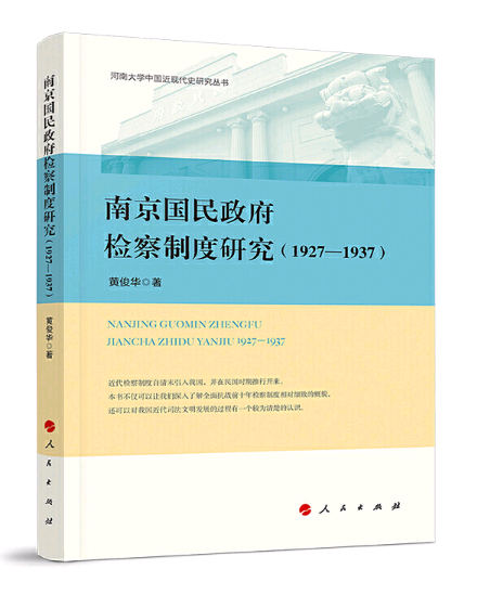 黄俊华老师于2019年8月在人民出版社出版《南京国民政府检察制度研究(1927-1937)》,全书33.7万字。