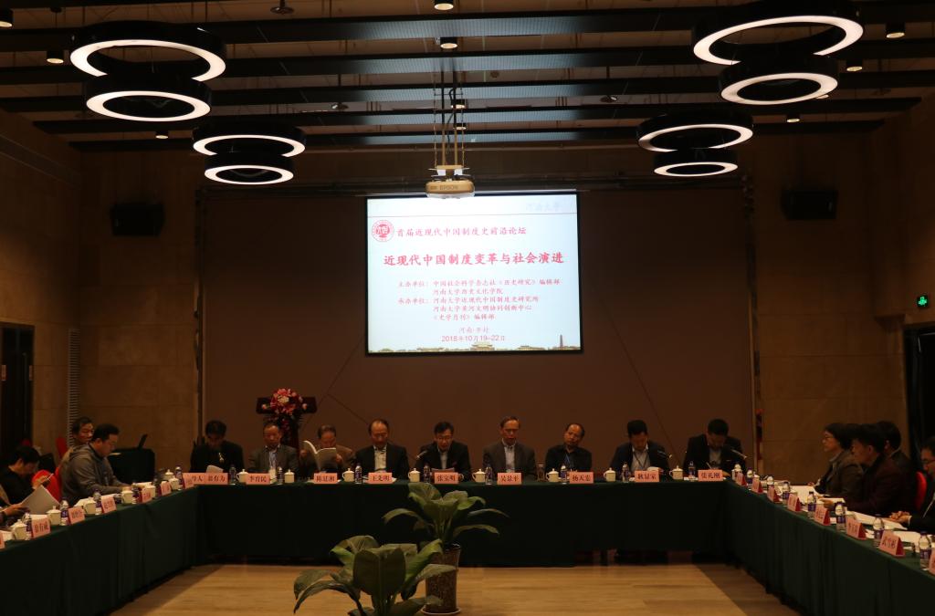 2018年10月20日―22,由中国社会科学杂志社《历史研究》编辑部、九色视频 主办的“首届近现代中国制度史前沿论坛——近现代中国制度变革与社会演进”在河南开封市新东苑大酒店隆重举行。国务院学科评议组成员、复旦大学教授吴景平,国务院学科评议组成员、南开大学教授王先明,国务院学科评议组成员、北京师范大学教授李帆,近现代史研究著名专家四川大学教授陈廷湘、杨天宏,近现代史研究著名专家中国社会科学院近代史研究所研究员于化民,近现代史研究著名专家湖南师范大学教授李育民,近现代史研究著名专家中央党校党史部教授、副主任张太原,近现代史研究著名专家南开大学教授、历史学院院长江沛,《中国社会科学》杂志社总编室主任耿显家,《中国社会科学》杂志社史学部副主任、《中国社会科学文摘》副主编晁天义,《中共党史研究》编辑部主编高远戎,《近代史研究》编辑部副编审潘晓霞,以及中山大学、山东大学、暨南大学、上海交通大学、上海大学、《东岳论丛》杂志社、河南省社会科学院、郑州大学、九色视频 等单位的共计50余位专家学者莅临参会。