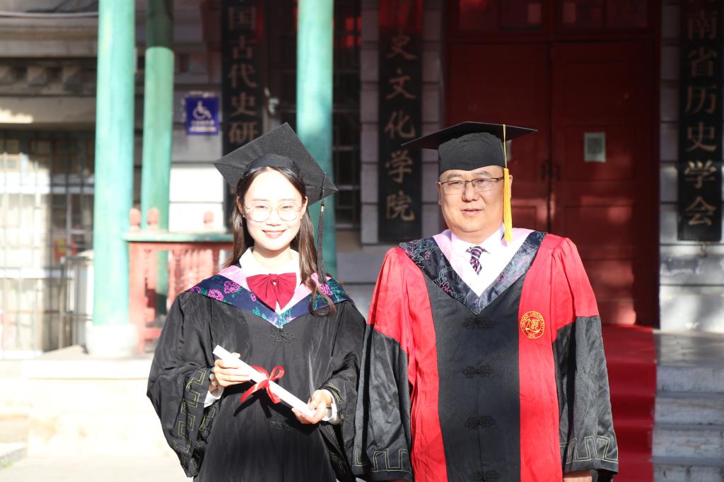毕业典礼在庄严的国歌声拉开序幕。2017级世界史专业滕帅坤同学作为毕业生代表发言。他回忆了大学四年的点点滴滴,并分享了自己和母校共同成长的经历,表示将尽最大努力迎接未来新的挑战,坚定信念、不负所望,努力交出一份满意的答卷,言语间充满了不舍。2019级文物与博物馆学专业孙荣羚同学作为在校生代表发言。她对学长学姐们的关心和帮助表示感谢,并祝愿他们前程似锦,一路乘风破浪,创造精彩人生,作为学弟学妹们要继承和弘扬学院优良传统,努力学习,刻苦锻炼,奋斗成才。