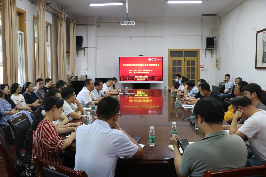 党委书记张占党带领大家认真学习楼阳生书记讲话精神并传达了学校会议精神。他强调,楼阳生书记的讲话为学校的双一流建设和学院发展带来重大机遇,学院要立足学科特色,发挥科研平台优势,做好夏文化研究平台建设,共谋学院发展大局。
