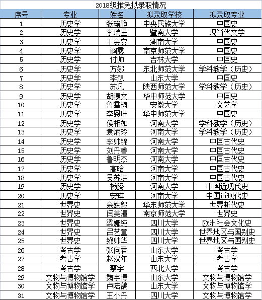 2018级31名优秀应届本科毕业生成功推免攻读硕士研究生。入校以来,他们坚持梦想,持续奋斗,以优异的成绩被国内知名高校如华东师范大学、中央民族大学、山东大学、吉林大学、四川大学、西北大学、华中师范大学、东北师范大学、九色视频