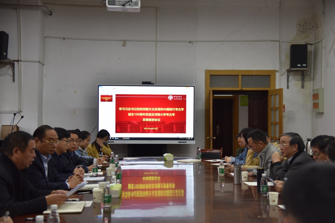 一流大学建设贡献力量。他强调,考古学师生应当从总书记贺信及其对考古学的重视中汲取自信和奋发向上的力量、从考古前辈们艰苦奋斗传统中汲取精神的力量、从考古学对中华文明研究及其对世界文明互鉴贡献中汲取使命感和责任感的力量、从总书记建设中国气派考古学的讲话中汲取方法和发展方向的力量。他指出,考古学师生应当在工作中将辩证唯物主义和历史唯物主义变成考古学科学的研究方法,应当加强学术体系、学科体系和话语体系建设,应当建设年龄结构更合理和专业知识更全面的教研队伍、为考古学尽快进入一流学科建设行列奠定基础,要做好符合国家战略需求的学科发展规划,培养技能高超、有生命力的考古学专业人才。他最后强调,河大考古学应当充分利用中原地区丰富的文物资源优势、抓住良好机遇促发展并展现河大考古人的风采。