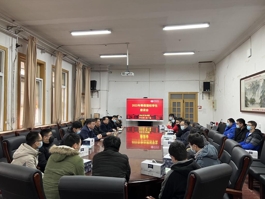 2022年寒假留校学生座谈会在学院三楼会议室举行,学院党委书记张占党、院长祁琛云和辅导员老师及留校学生参加座谈会,座谈会由学院党委副书记周文凯主持。