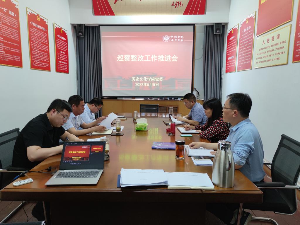在院三楼党员活动室召开巡察整改工作推进会,学院党委委员、班子成员参加会议。会议由学院党委书记张占党主持。