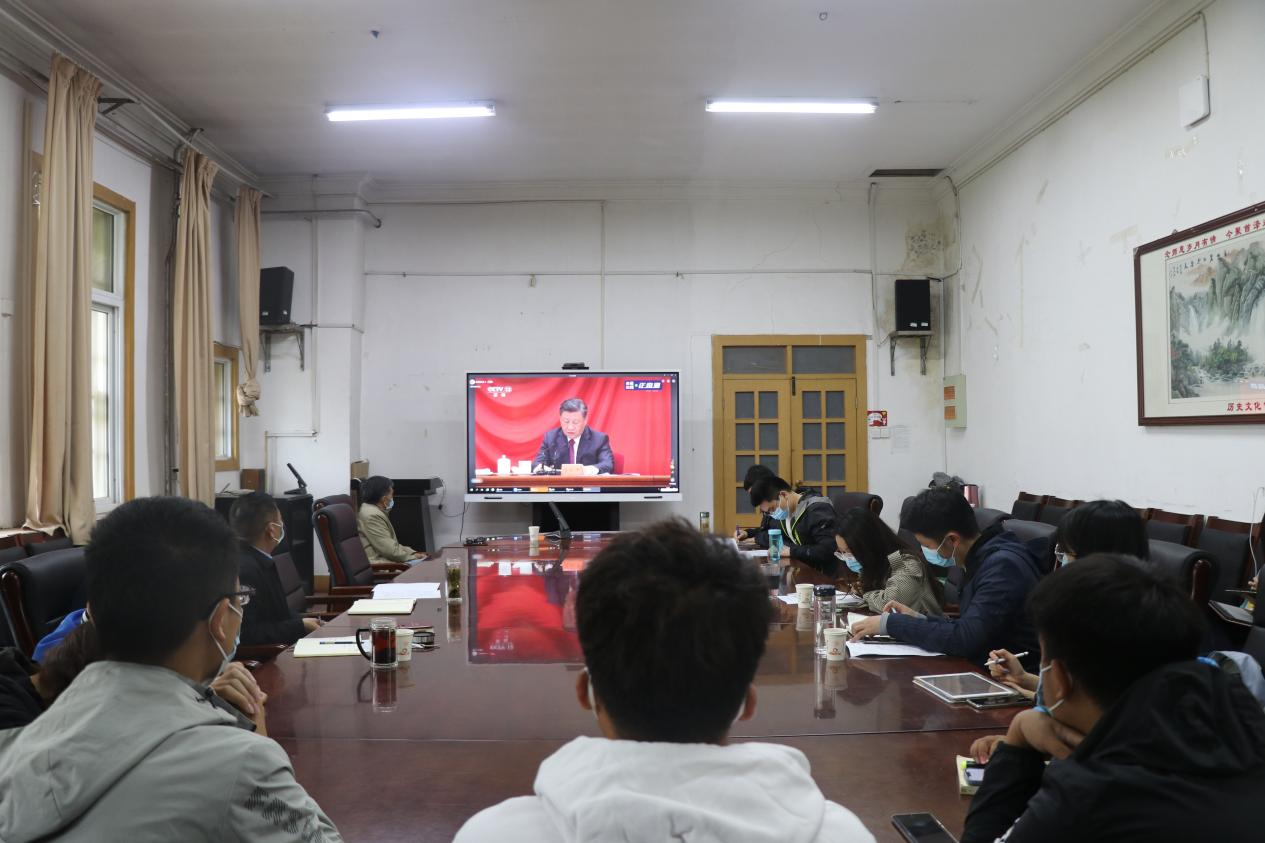 在三楼会议室组织集中观看活动,学院党委书记张占党、副书记周文凯、党委委员赵金康教授、全体辅导员老师和学生代表参加,认真聆听了习近平总书记的重要讲话。