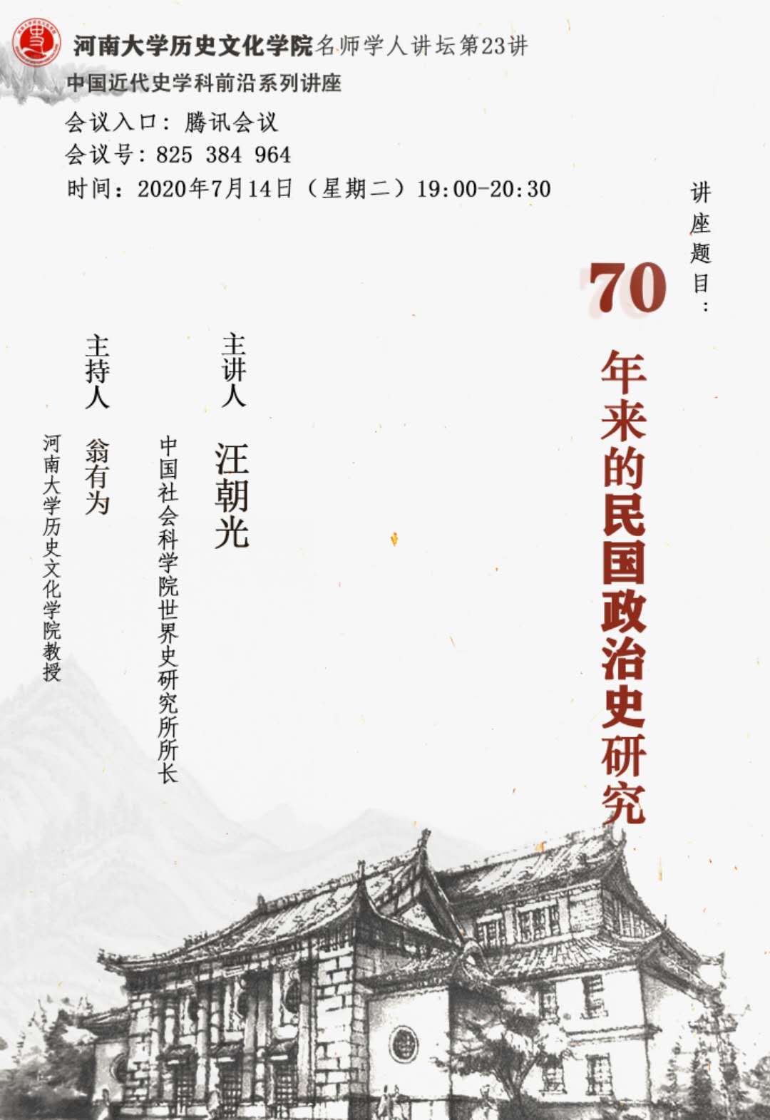 【讲座通知】汪朝光:70年来的民国政治史研究