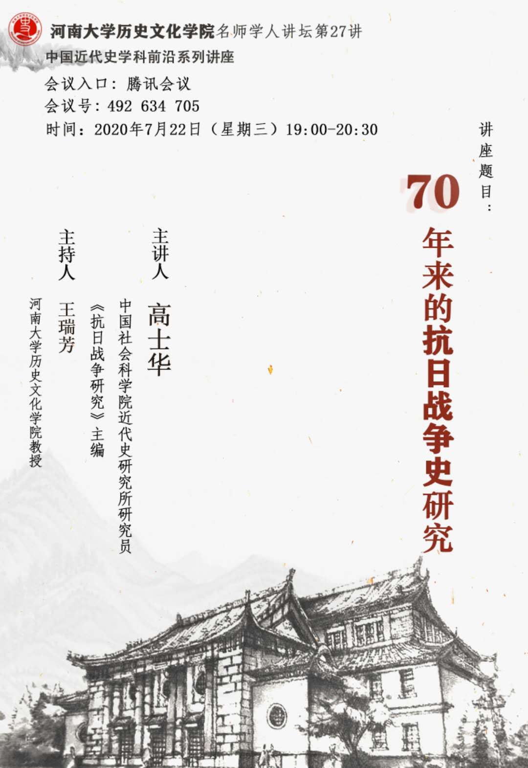 【讲座通知】高士华:70年来的抗日战争史研究