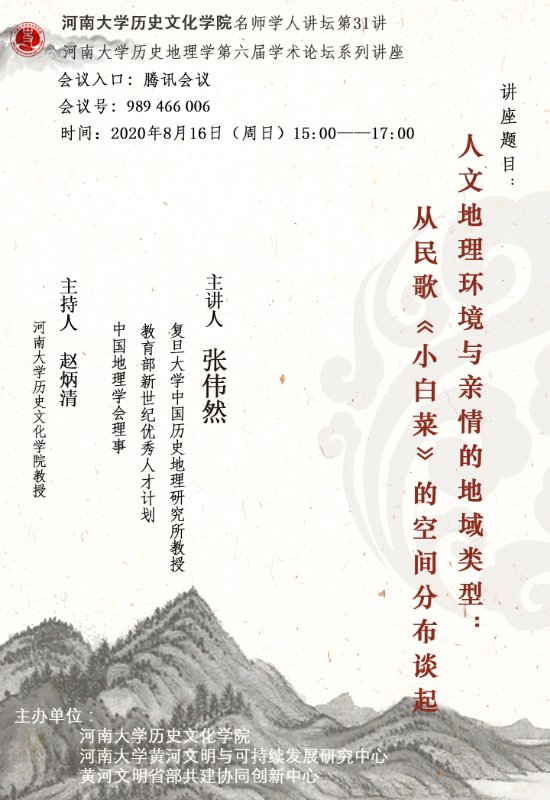 【讲座通知】张伟然:人文地理环境与亲情的地域类型:从民歌《小白菜》的空间分布谈起