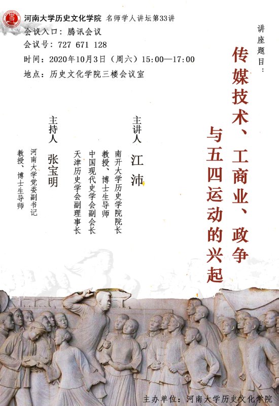 【讲座通知】江沛:传媒技术、工商业、政争与五四运动的兴起