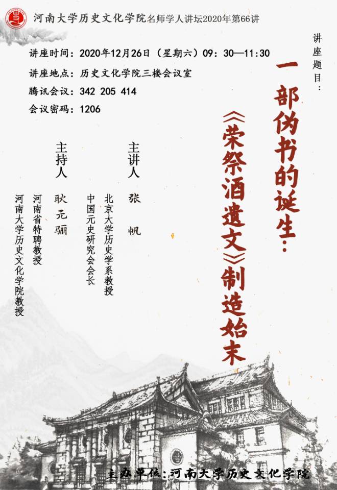 【讲座通知】张帆:一部伪书的诞生:《荣祭酒遗文》制造始末