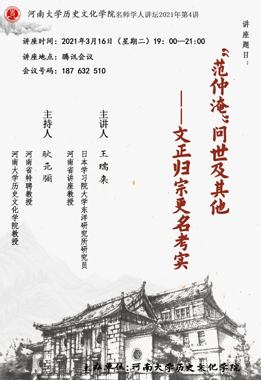 【讲座通知】王瑞来:“范仲淹”问世及其他——文正归宗更名考实