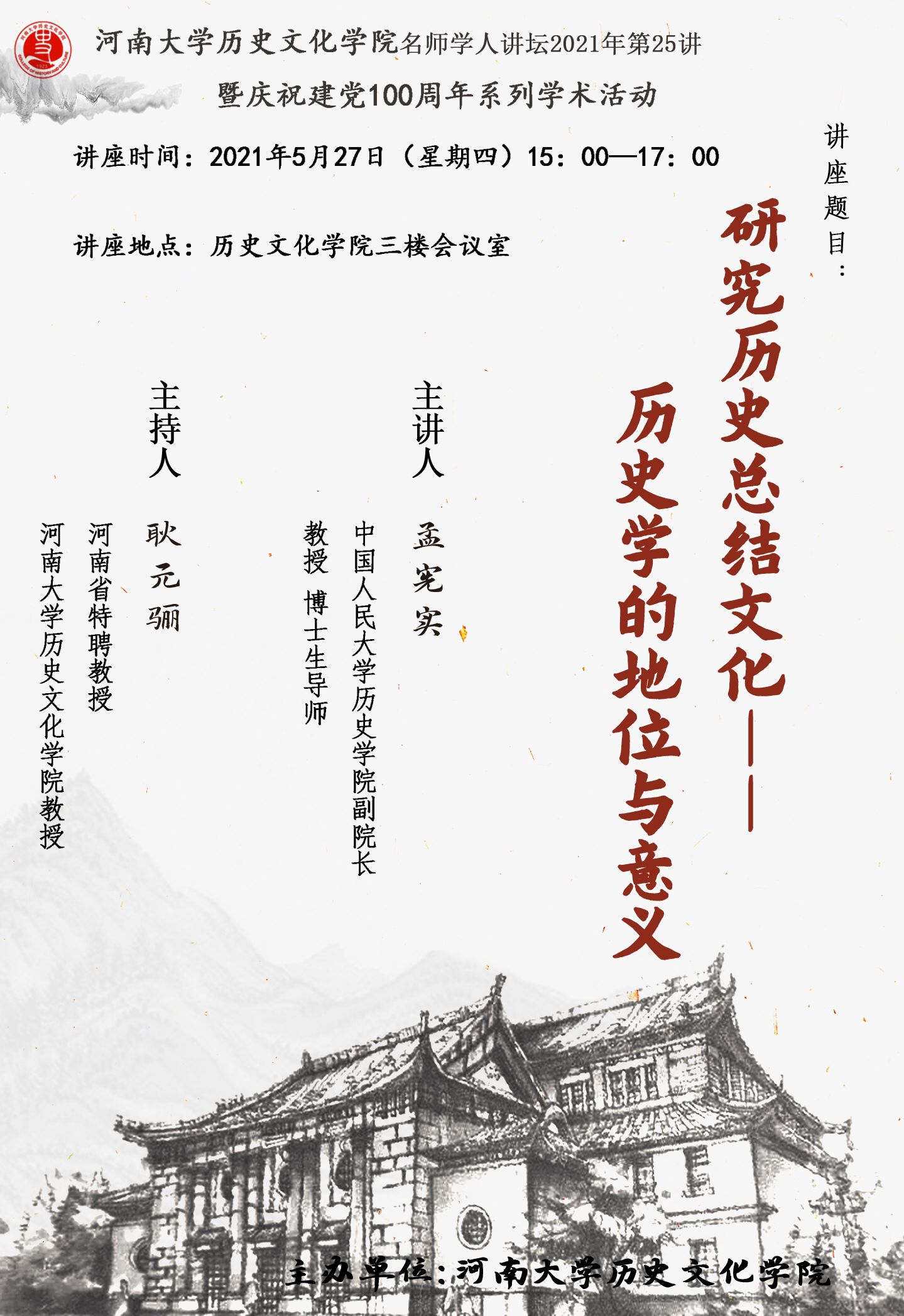 【讲座通知】孟宪实:研究历史总结文化——历史学的地位与意义