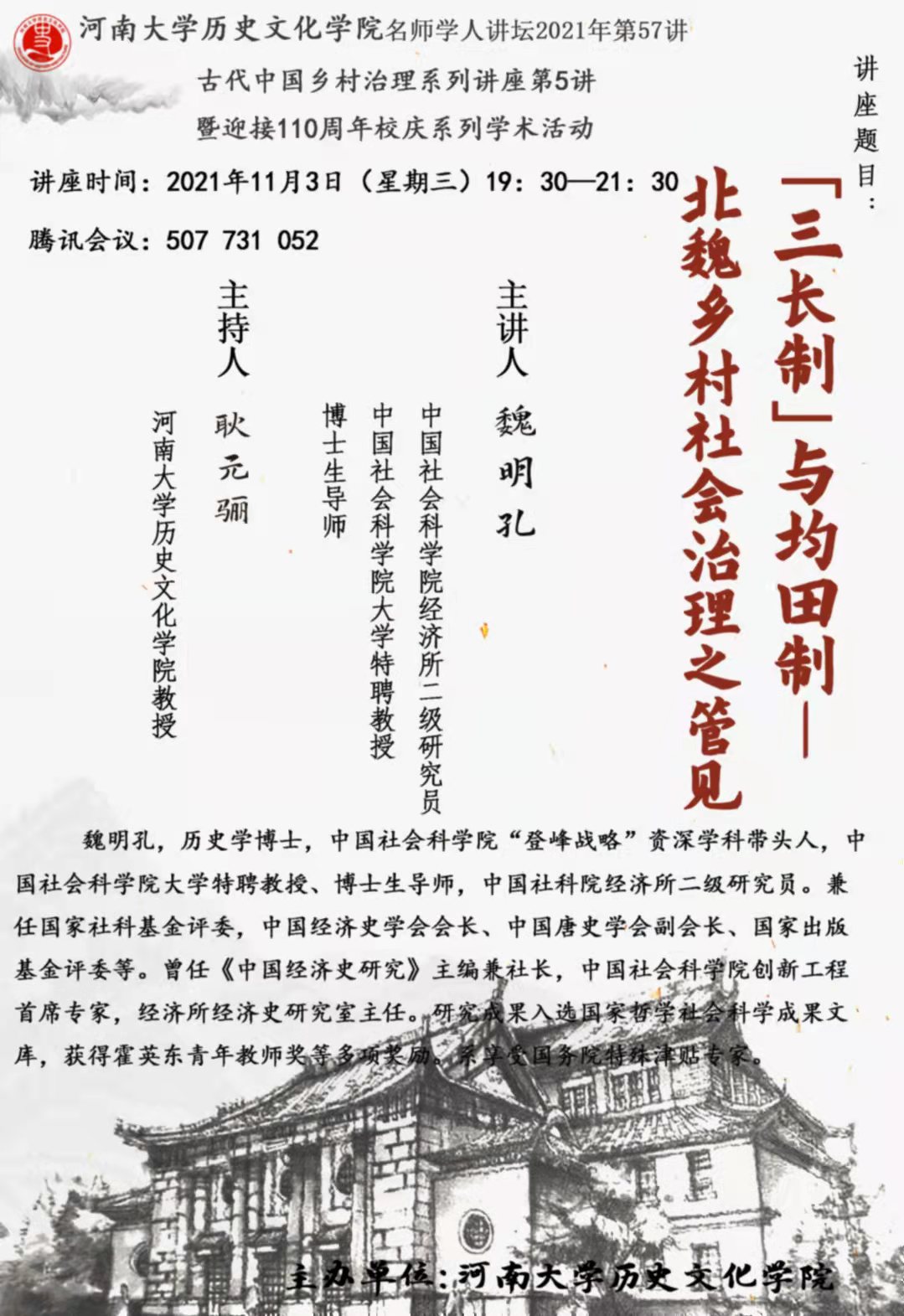 【讲座通知】魏明孔:「三长制」与均田制——北魏乡村社会治理之管见