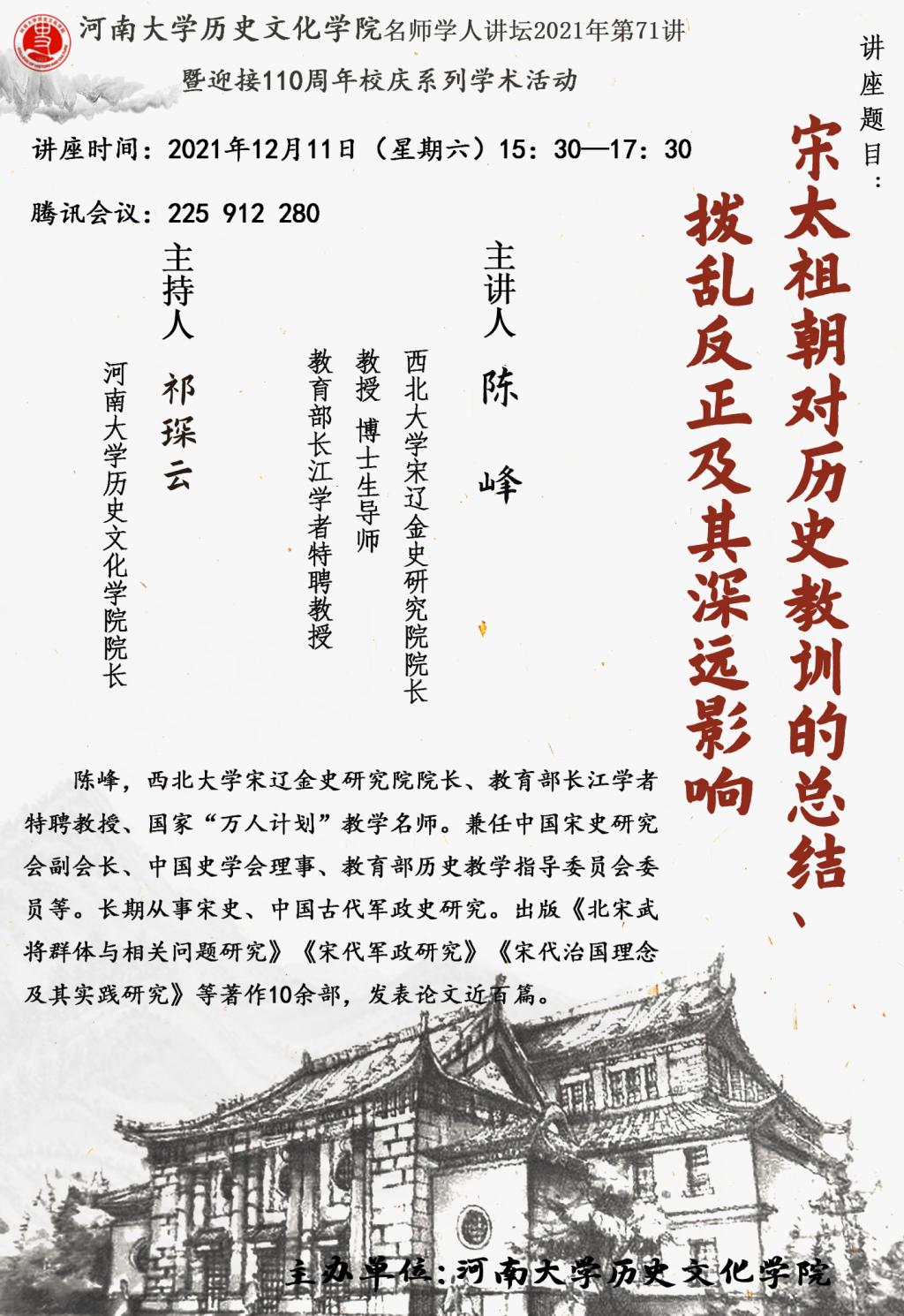 【讲座通知】陈峰:宋太祖朝对历史教训的总结、拨乱反正及其深远影响