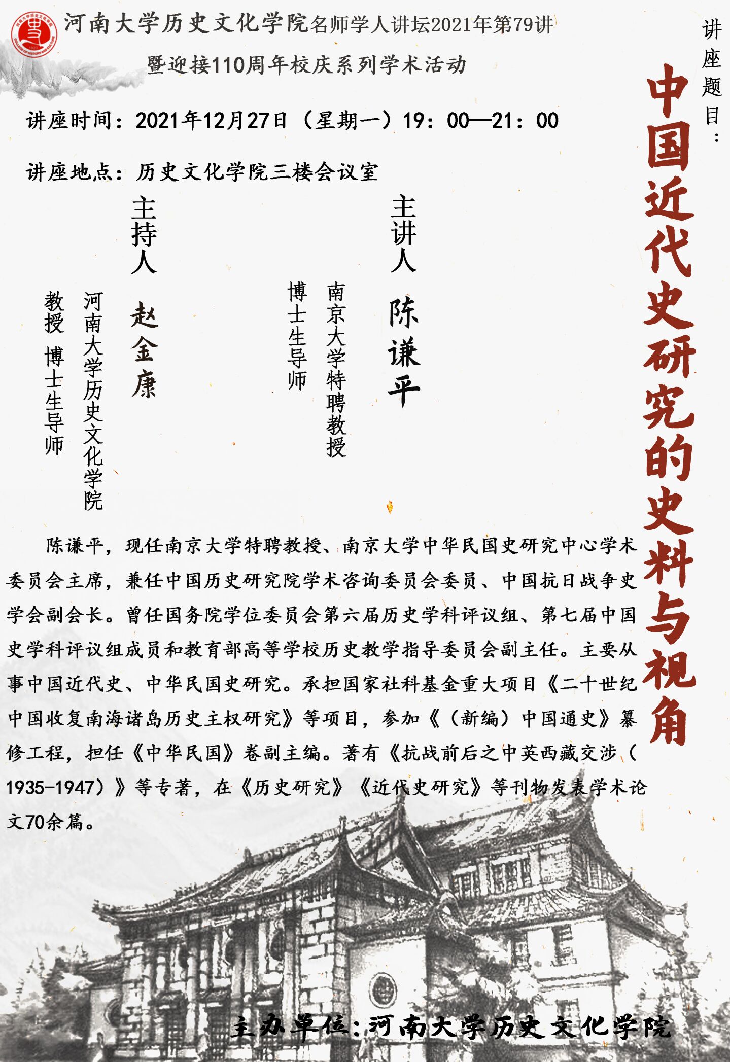 【讲座通知】陈谦平:中国近代史研究的史料与视角