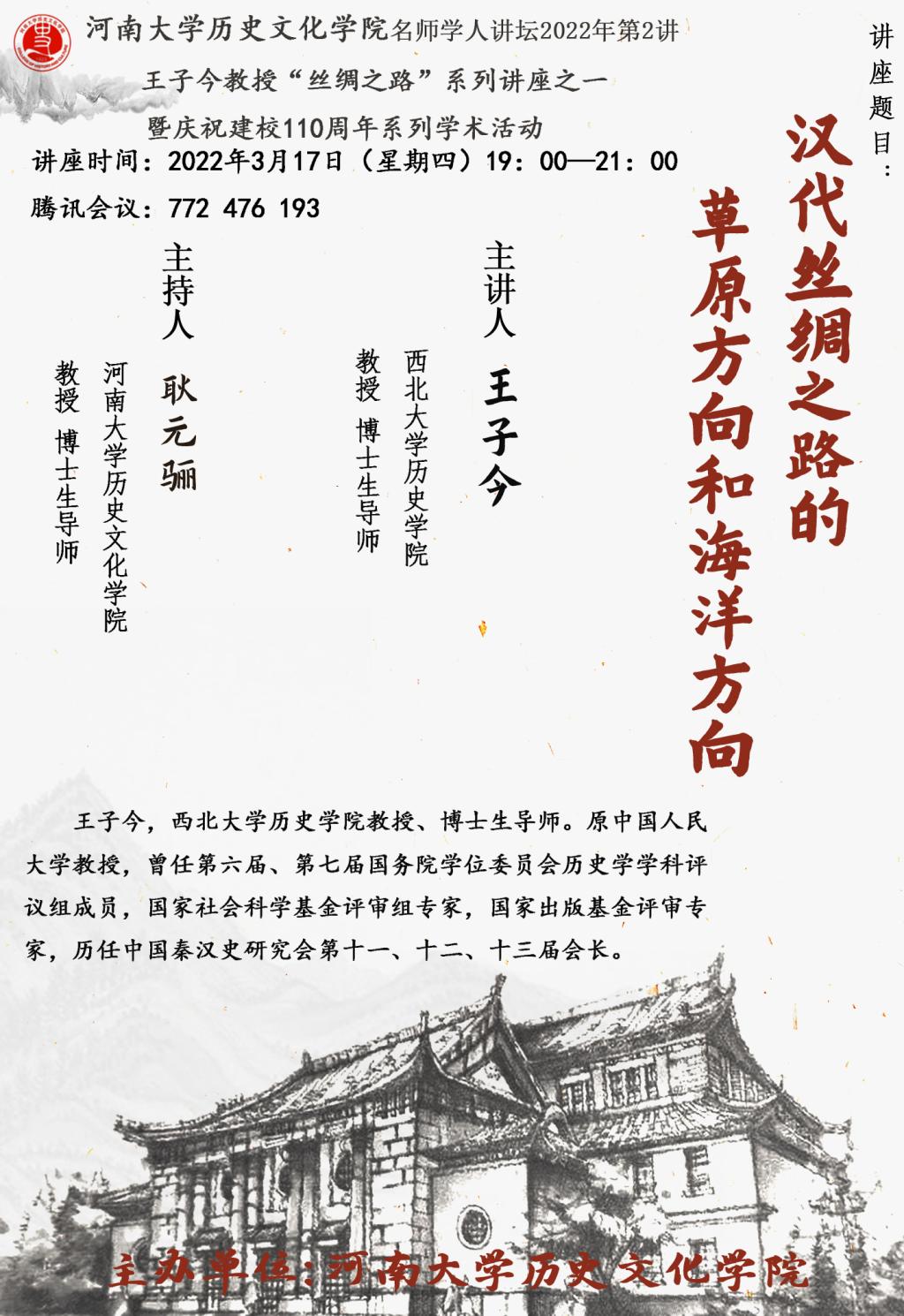 【讲座通知】王子今:汉代丝绸之路的草原方向和海洋方向