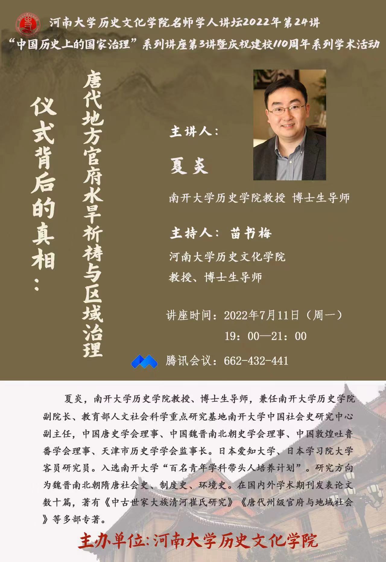【讲座通知】夏炎:仪式背后的真相:唐代地方官府水旱祈祷与区域治理