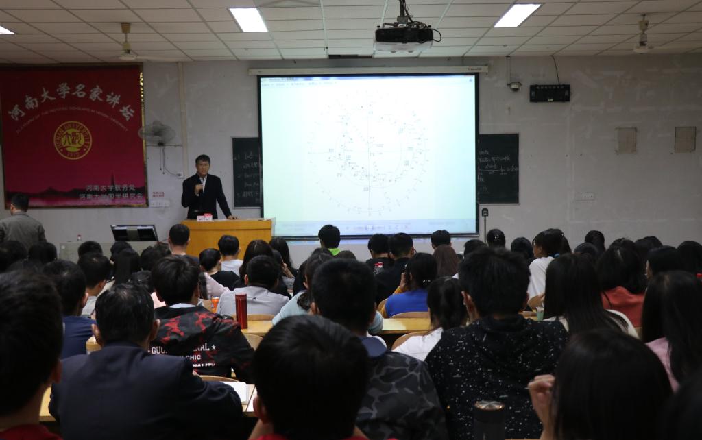 接着,冯时教授分析了濮阳西水坡发现的随葬龙虎的墓葬,探讨了墓葬内部结构深层次的文化内涵, 将该墓葬形容为“最早的天文图”。通过曾侯乙墓出土的星图以及多种史料的佐证,将我国掌握天文学知识的起始时间追溯到距今6500年左右,他还从天文学的流变中提出“文明以止,人文也”的观点,并特别强调“只有不变的传承才是传统,有了传承才能看见传统”,以警醒学生不忘传统。