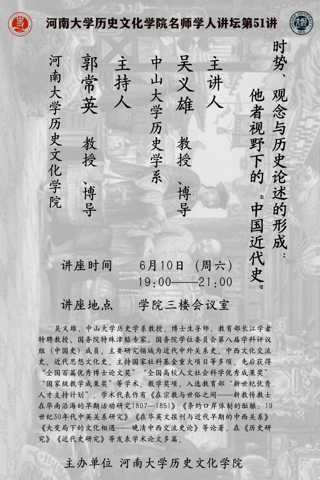 【讲座通知】吴义雄:时势、观念与历史论述的形成:他者视野下的“中国近代史”