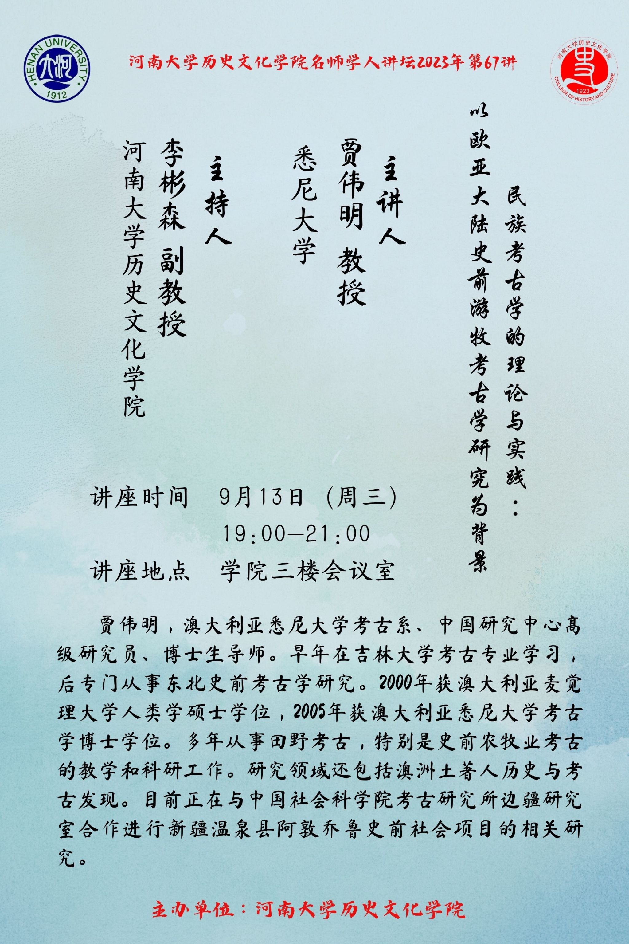 【讲座通知】贾伟明:民族考古学的理论与实践:以欧亚大陆史前游牧考古学研究为背景