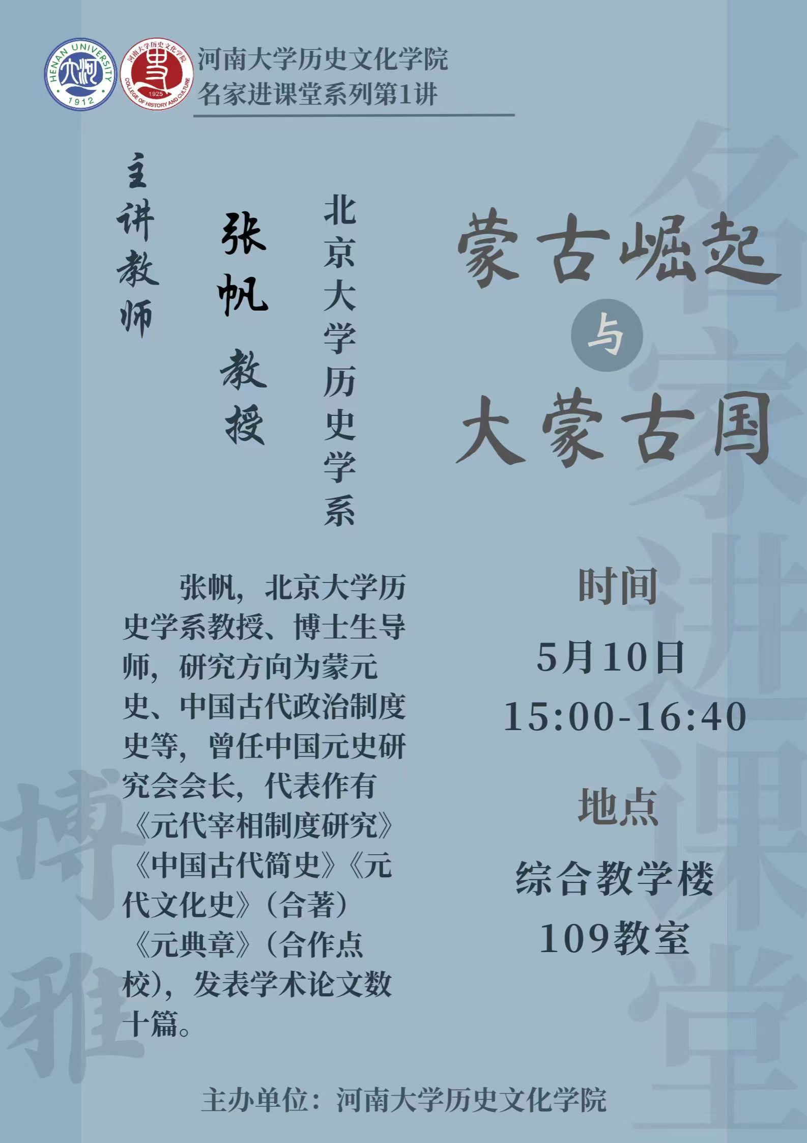 下一篇:【讲座通知】张帆:元初名将伯颜的政治生涯(1265-1295)