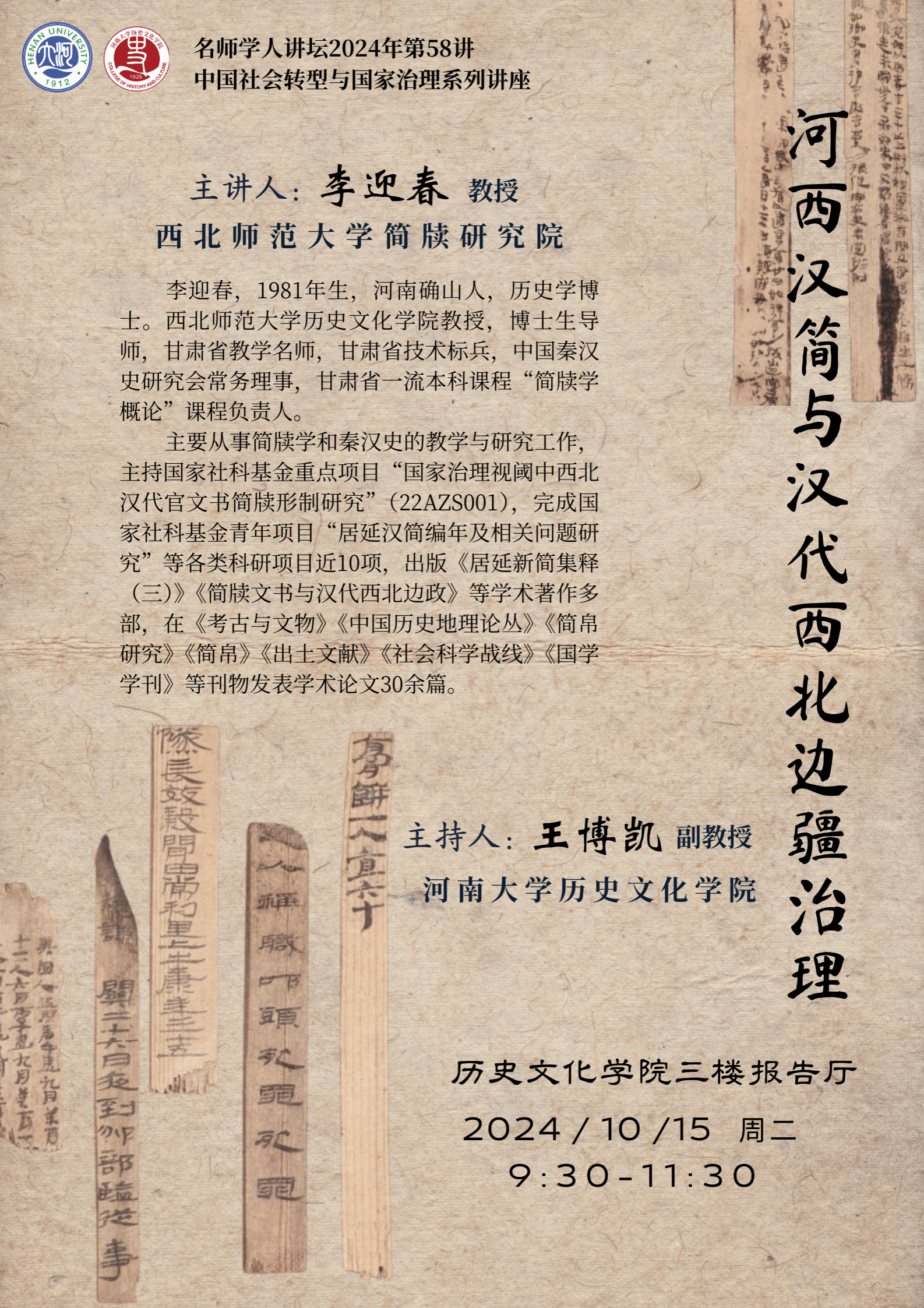 【讲座通知】李迎春:河西汉简与汉代西北边疆治理