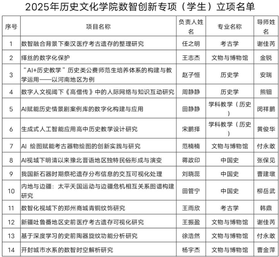 经学生自主申报、导师推荐、专家评审委员会综合评议,最终确定14项课题获得立项资助。现将2025年度立项名单予以公布,详见下表。