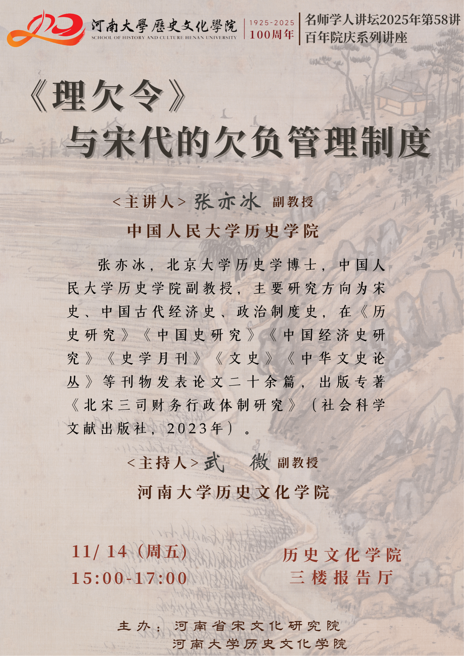 【讲座预告】张亦冰:《理欠令》与宋代的欠负管理制度