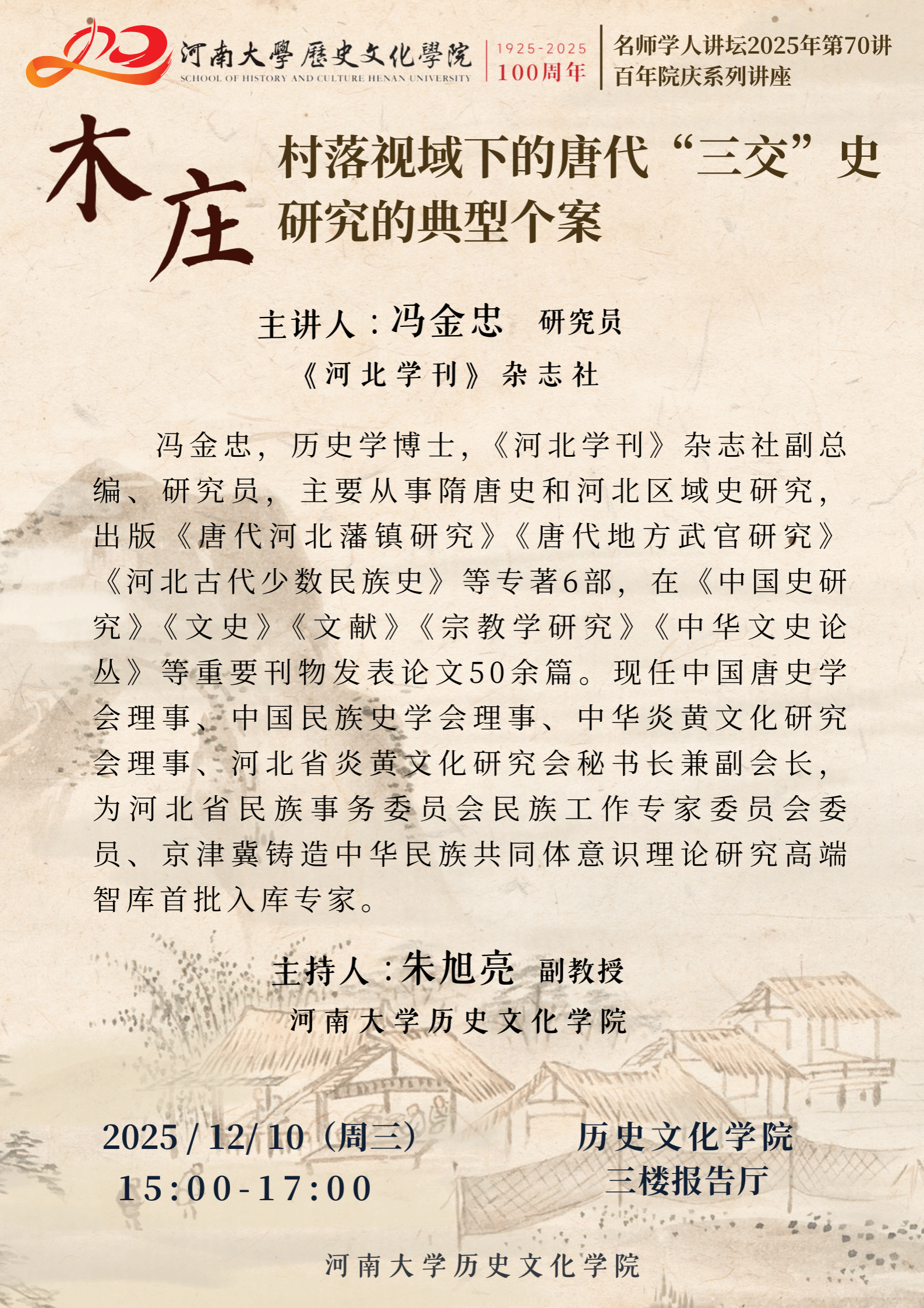 【讲座预告】冯金忠 :木庄村落视域下的唐代"三交"史研究的典型个案