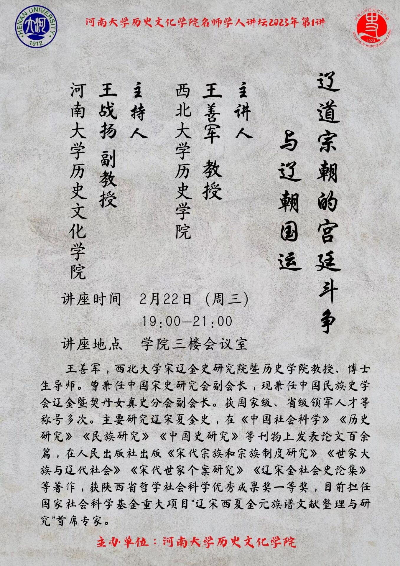 【讲座通知】王善军:辽道宗朝的宫廷斗争与辽朝国运
