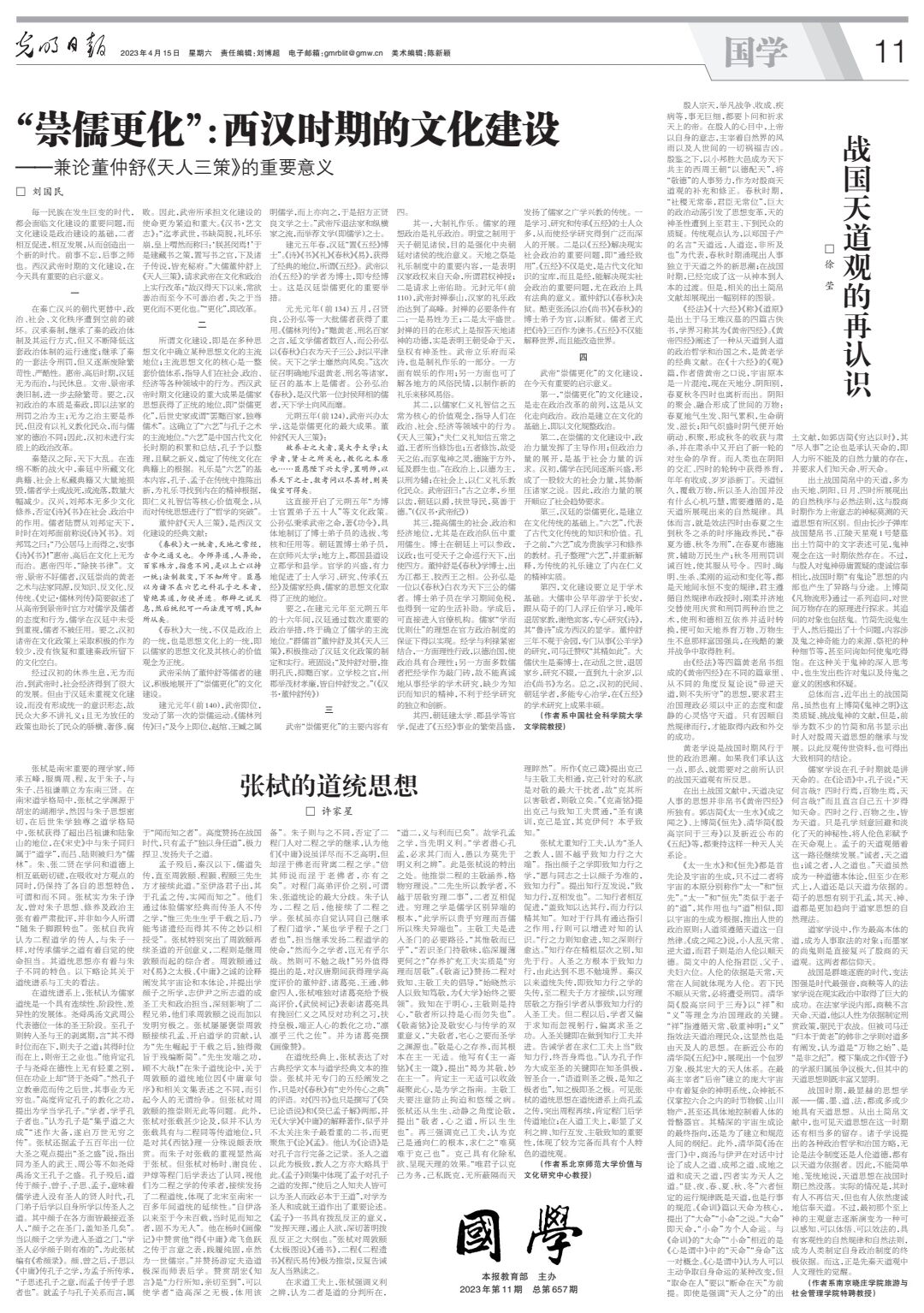 徐莹在《哲学研究》(2023年第3期)刊发《先德后刑与先刑后赏:两种早期刑德学说的比较》、《光明日报》(2023年4月15日)刊发《战国天道观的再认识》重要文章。