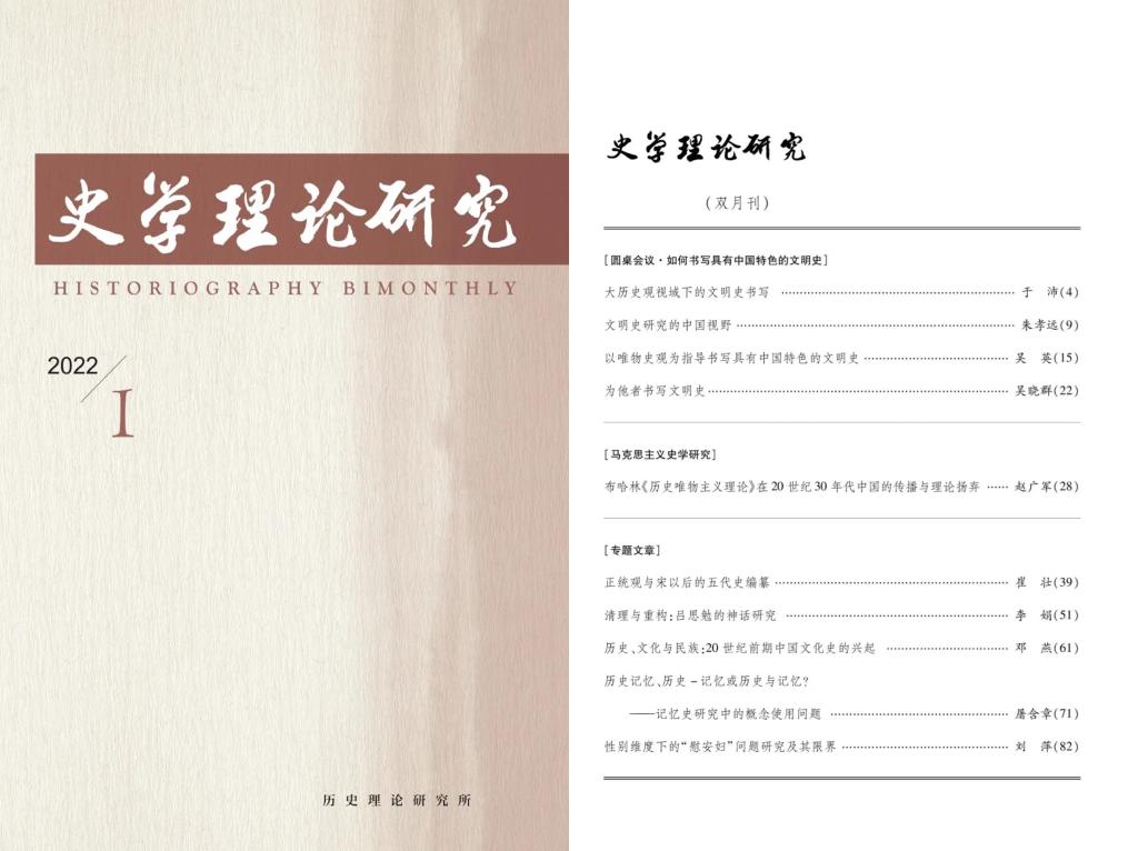 教师赵广军、宁腾飞分别在《史学理论研究》2022年第1期、第2期发表《布哈林<历史唯物主义理论>在20世纪30年代中国的传播与理论扬弃》和《刘泽华史学方法论的构建》的专题论文。