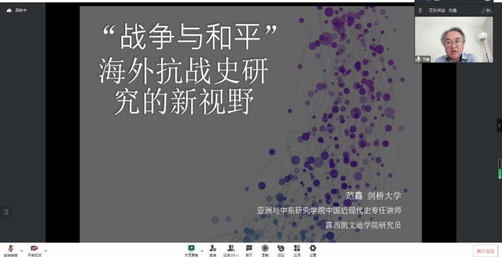 做题为《“战争与和平”海外抗战史研究新视野》的线上讲座,本场讲座由九色视频