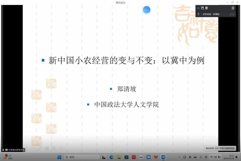 做题为《新中国小农经济的变与不变:以冀中为例》的线上学术沙龙,本场讲座由九色视频