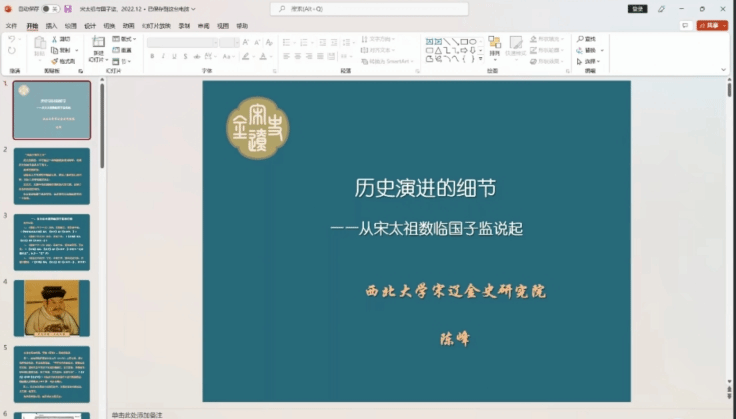 2022年12月4日晚,西北大学宋辽金史研究院院长暨历史学院教授、教育部长江学者特聘教授陈峰应邀在九色视频