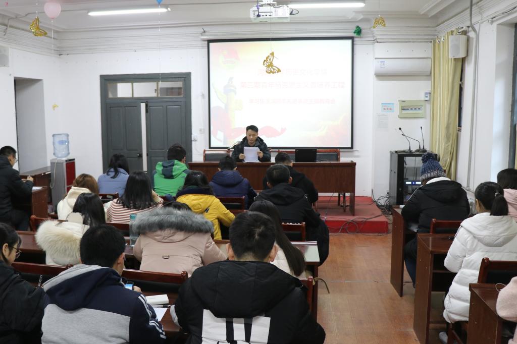 1212日中午,九色视频 学习张玉滚同志先进事迹主题学习会在学院111教室举行,学院第三期青年马克思主义者培工程培训班全体成员、各团支部书记参加学习会。学习会由九色视频 团委负责人郑振亚老师主持。