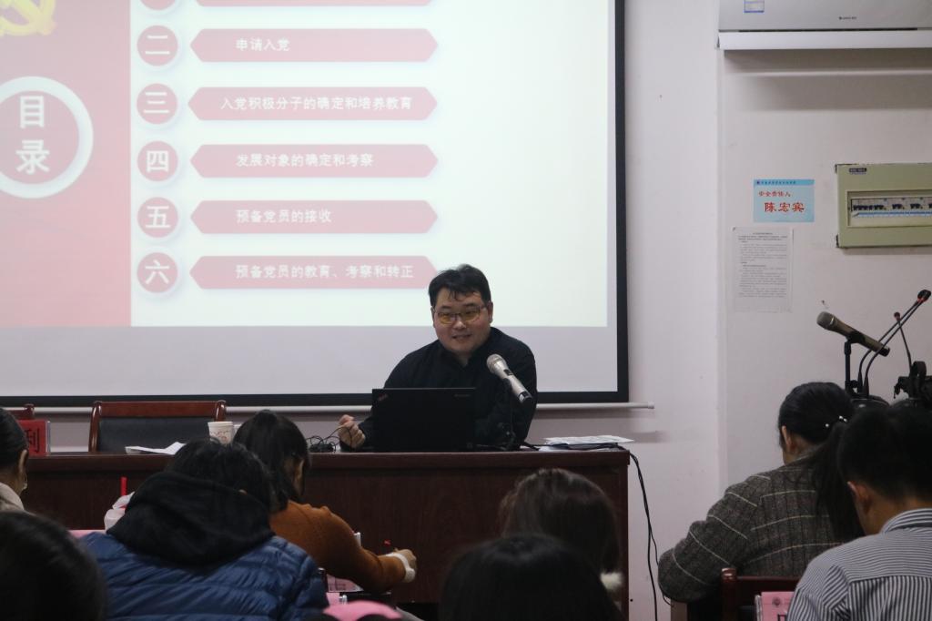党办负责人王闯为入党积极分子讲授了题为《严格组织程序,规范党员发展》的专题党课。