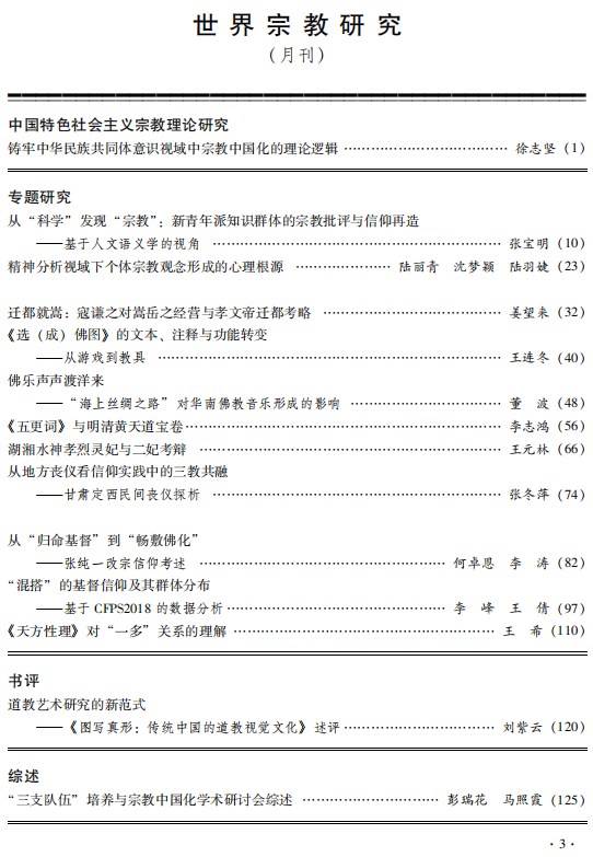 张宝明教授在《世界宗教研究》2023年第6期刊发专题论文《从“科学”发现“宗教”:新青年派知识群体的宗教批评与信仰再造——基于人文语义学的视角》。