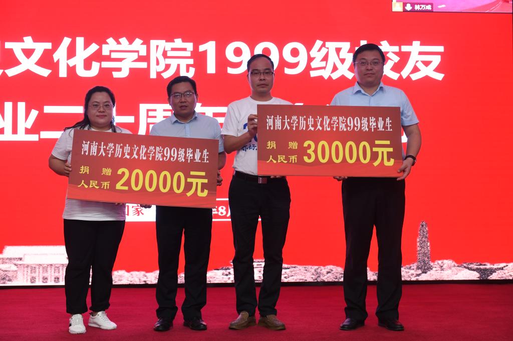 、文化旅游学院捐款,校友工作与教育发展基金会办公室副主任高欢为校友代表颁发捐赠证书。