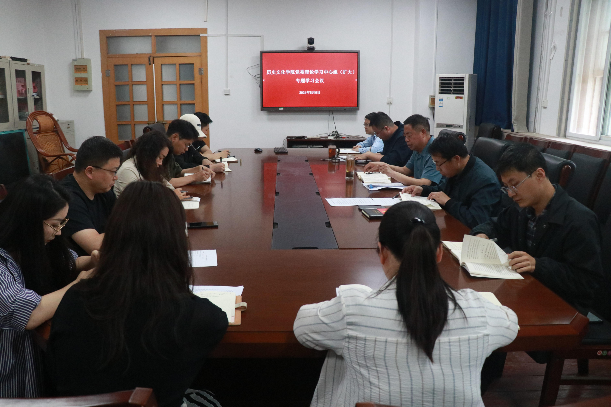在古代史教研室召开党委理论学习中心组(扩大)学习会,全体班子成员,系(教研室)党支部书记参会。会议由学院党委书记张占党主持。