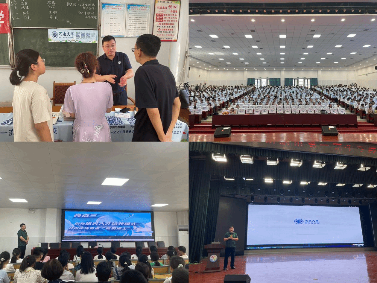 招生宣传组三组赴新野县第一高级中学、社旗县第一高级中学、方城县第一高中和方城县第三高中开展招生宣传。通过举办宣讲交流、发放宣传册等形式,向学生们介绍了我校的优势特色、教学资源、学术氛围以及校园文化,展示了学校的卓越风采与深厚底蕴,激发学生们的报考热情与动力,并向有意愿报考我校的学生提供志愿指导和个性化的建议。
