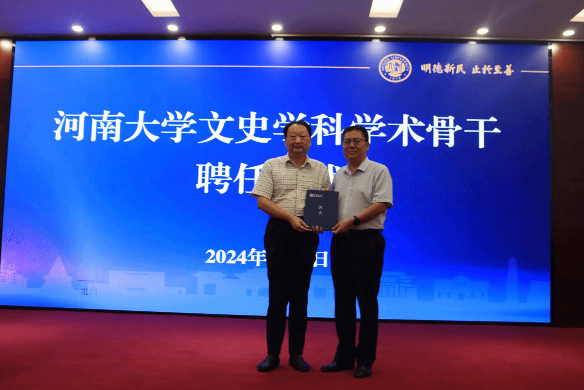 文史学科学术骨干”聘任仪式,由张礼刚为高层次人才魏志江教授颁发聘书。