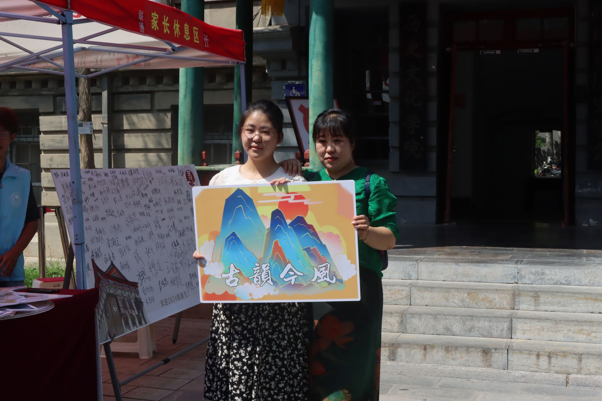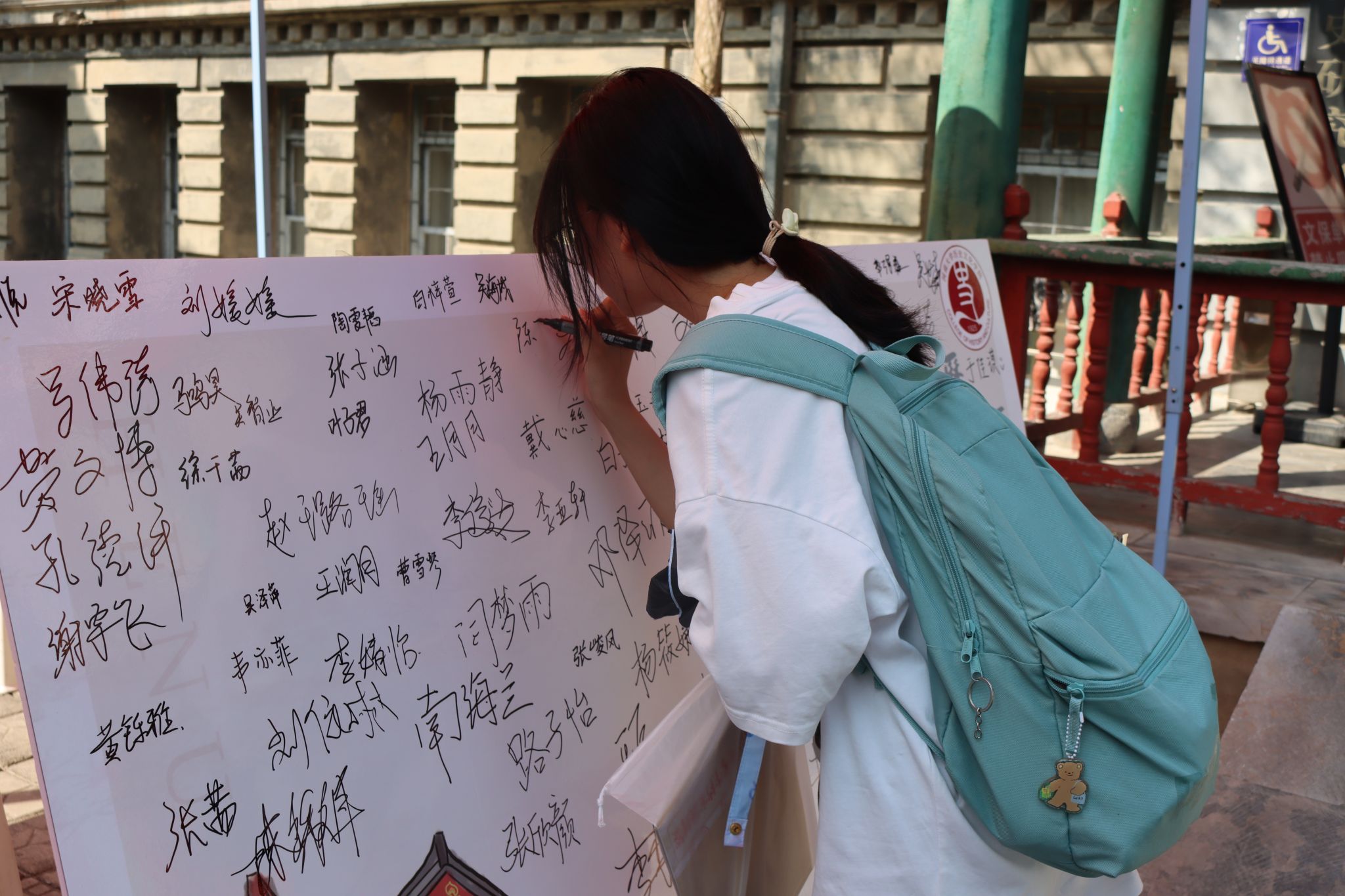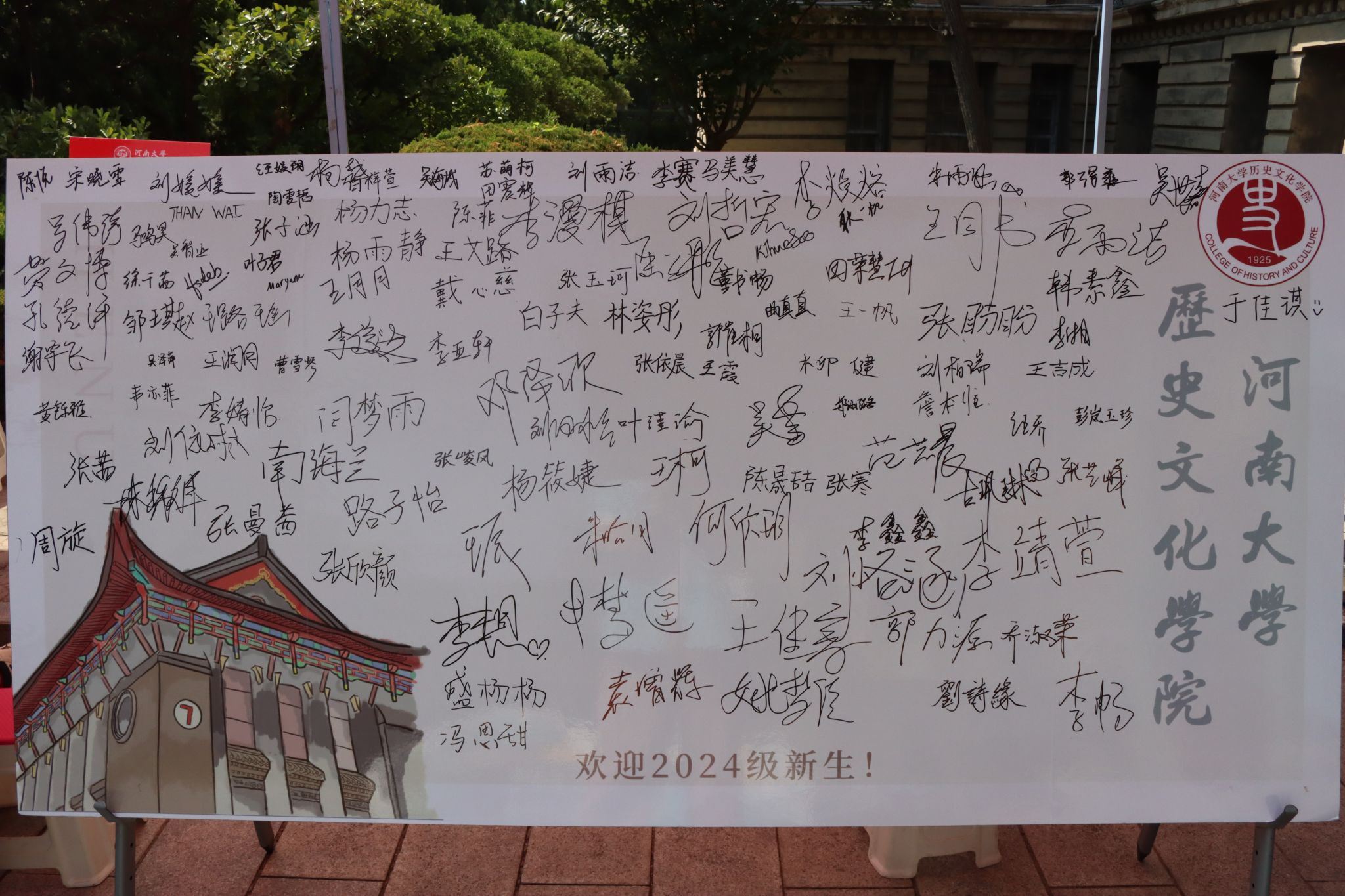 同学们激动地在签名板前写下自己的名字,并在学院门前和家人一起拍照留念。