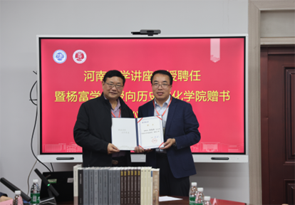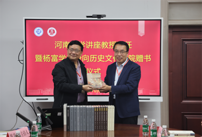 接受杨富学教授赠书。
