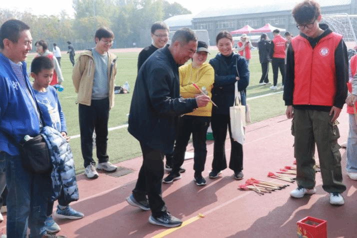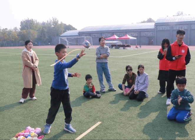 场地上,大小朋友齐上阵,心有灵犀,一扔一接,家长不断鼓励小朋友“对,就这样扔”“使劲,使劲”“宝贝真厉害”,小朋友们和家长默契十足,共度愉快亲子时光。