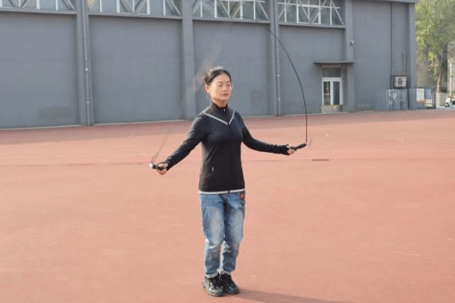 一声令下,场上彩绳翻飞,传来绳子打地的声音和绳子摆动时呼呼的风声。参赛老师充满活力与敏捷,即使偶尔被绳绊住,也迅速调整动作,投入比赛中。一分钟转瞬即逝,陈锴老师和安瑞老师分别获得男女子比赛第一名。