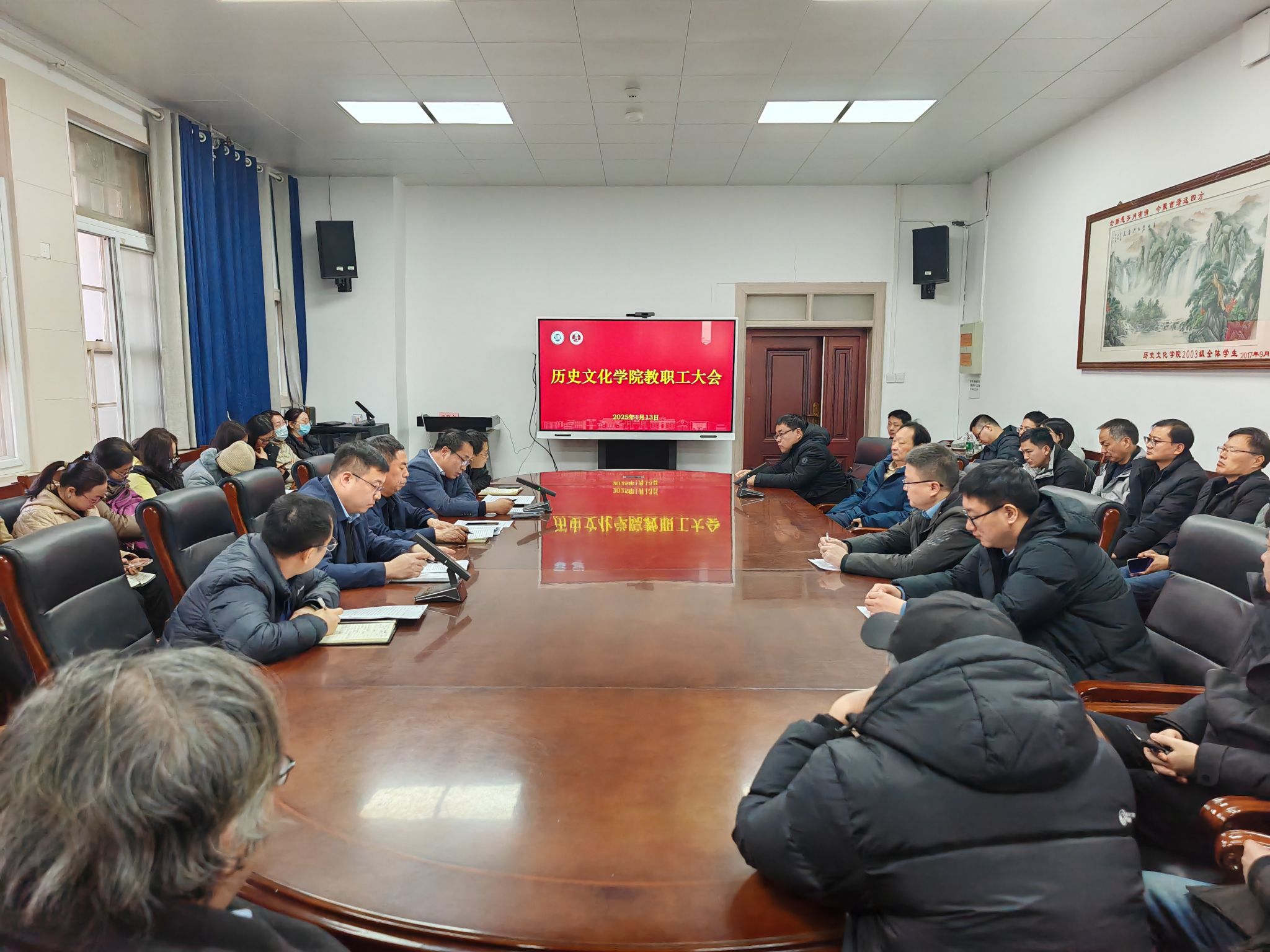院长祁琛云传达了学校第十九届教职工代表大会暨工会会员代表大会第一次会议精神,对学院2025年重点工作进行安排布置。他表示,学校的“双代会”是一次催人奋进、凝聚力量的大会,会议全面总结了近年来学校在党建引领、治理体系、学科体系建设等方面取得的成绩,全面分析了当前发展面临的形势和任务,系统部署了2025年学校事业发展的重大任务和改革创新举措。全院师生要贯彻落实会议精神,在学科建设、人才培养、岗位考核等方面激发创新活力,推进学院事业发展再上新台阶。