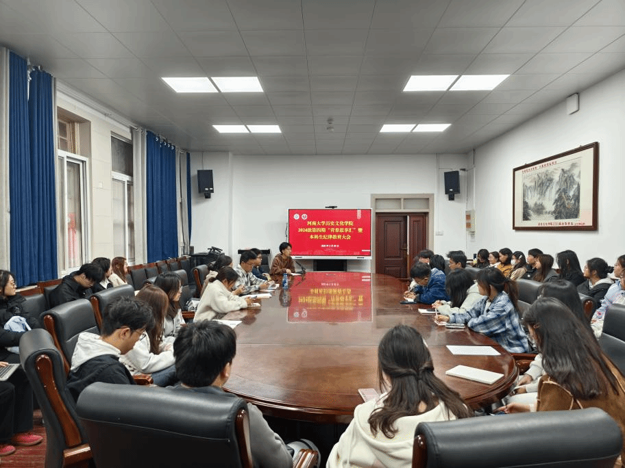 2024级本科生第四期“青春思享汇”暨纪律教育大会在学院三楼会议室顺利召开。本次会议由辅导员田管宁主持,2024级全体学生干部和入党积极分子参加。