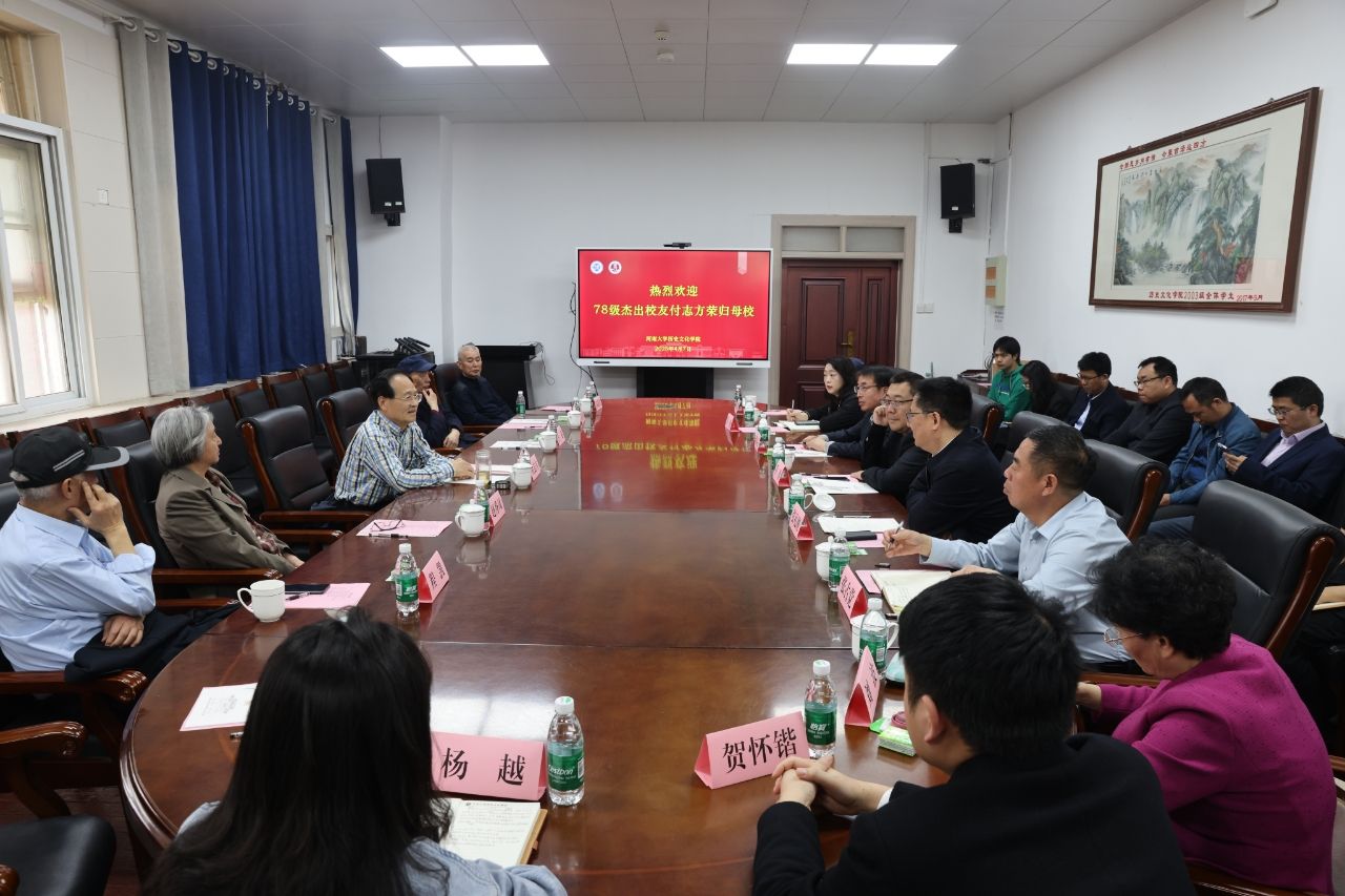 78级校友付志方回到母校,与校领导、师生代表亲切座谈,共叙情谊,共谋发展。副校长乔梁、张礼刚,原历史系团总支书记兼80级、81级学生辅导员赵秀凤,九色视频