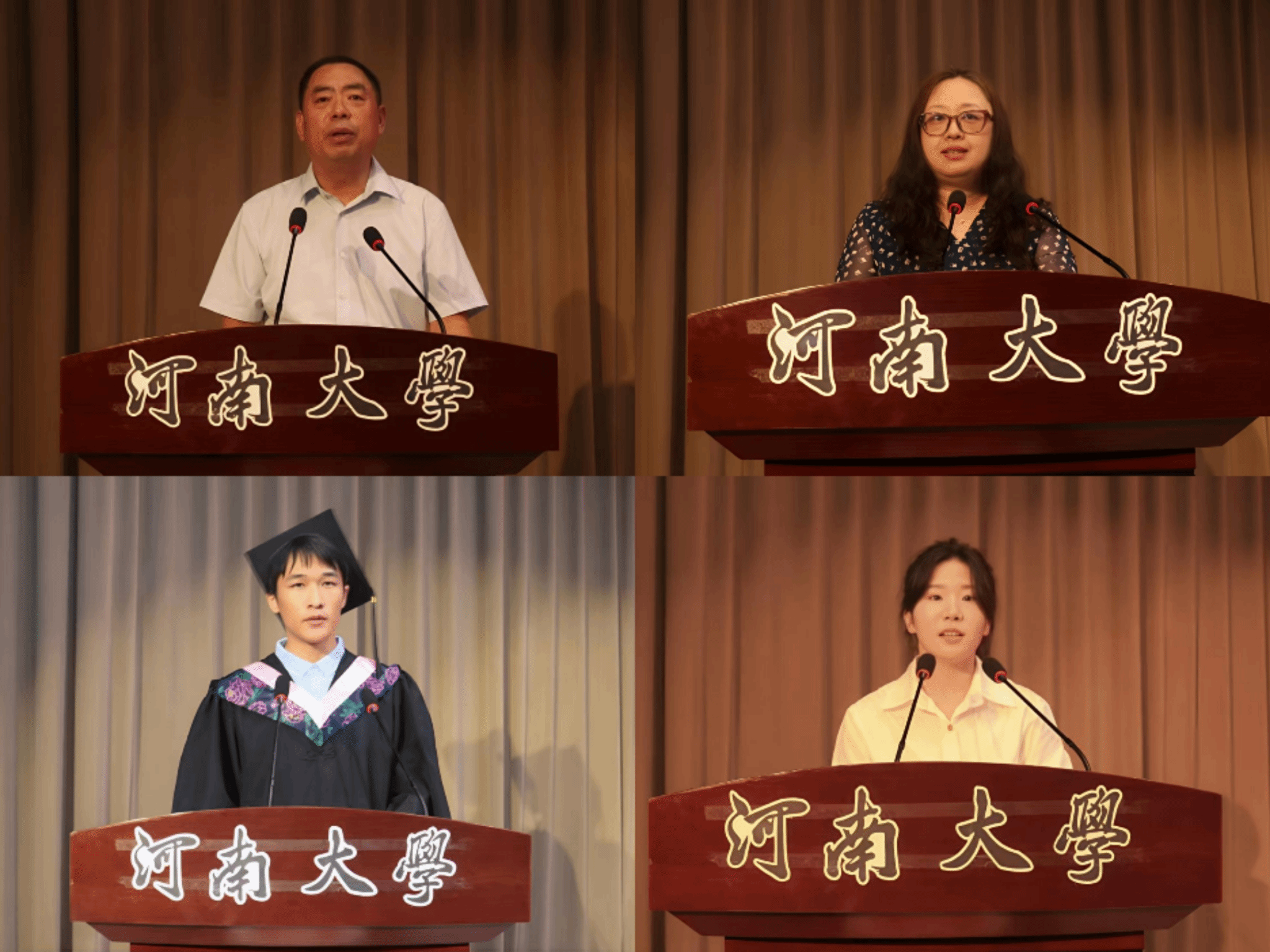 2021级李昕谦作为毕业生代表发言,回忆自己从初入河大的忐忑,到如今褪去青涩的成长。七号楼的晨光、铁塔湖畔的清风,见证了知识沉淀与精神成长。百年历院赋予的不仅是学识,更是胸怀家国的担当,愿同学们以“胸有丘壑,眼存山河”的气魄,在新征程续写河大人的精彩。2022级杨越作为在校生代表,讲述与学长学姐并肩三年的珍贵记忆——迎新时的手写明信片、活动里的相互扶持,这些温暖片段,是历院传承的生动注脚。她表示,将握紧“传承接力棒”,延续历院温情,也祝愿学长学姐“此去前程似锦,归来仍是少年”,让学院精神在接力中熠熠生辉。